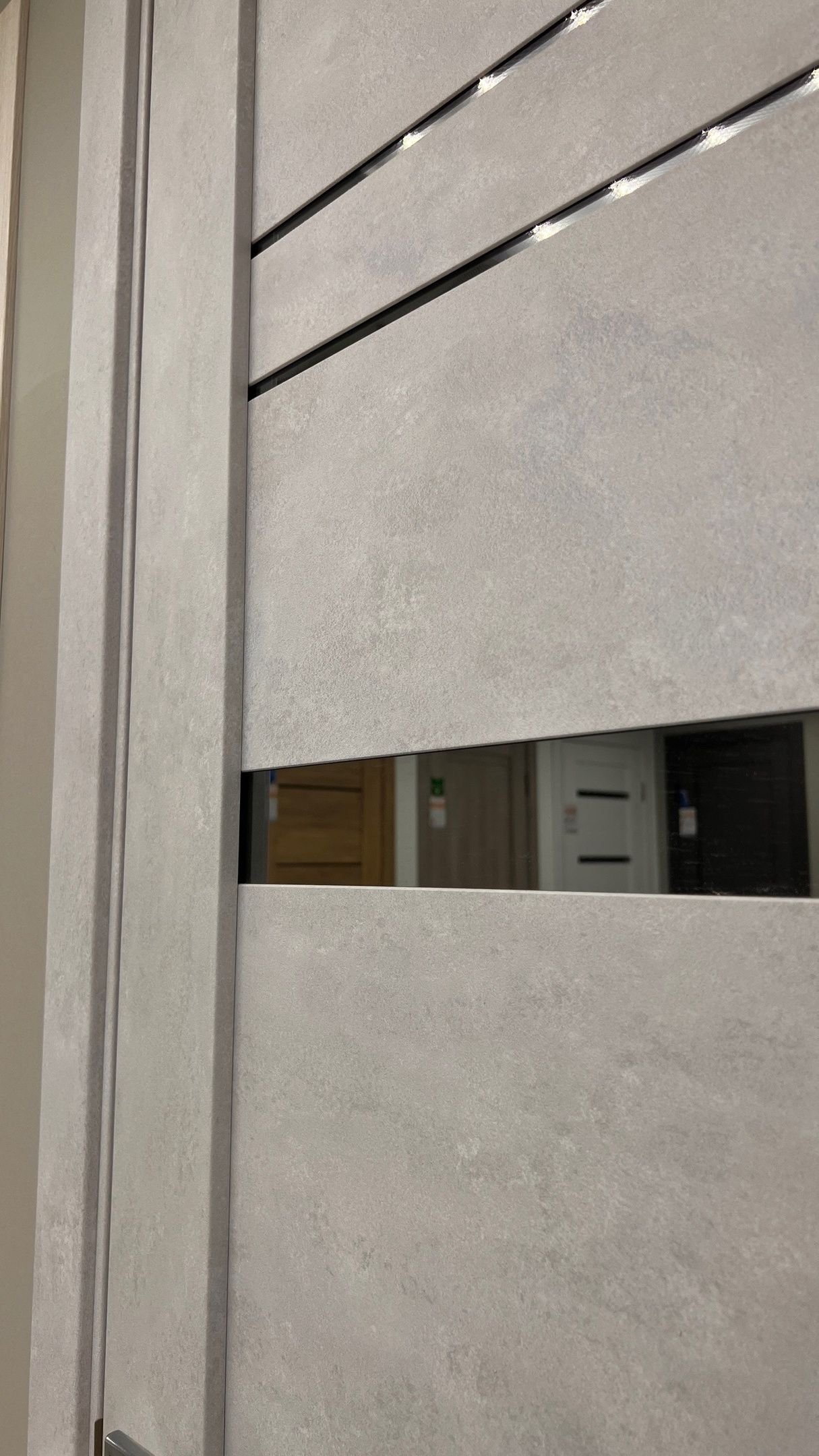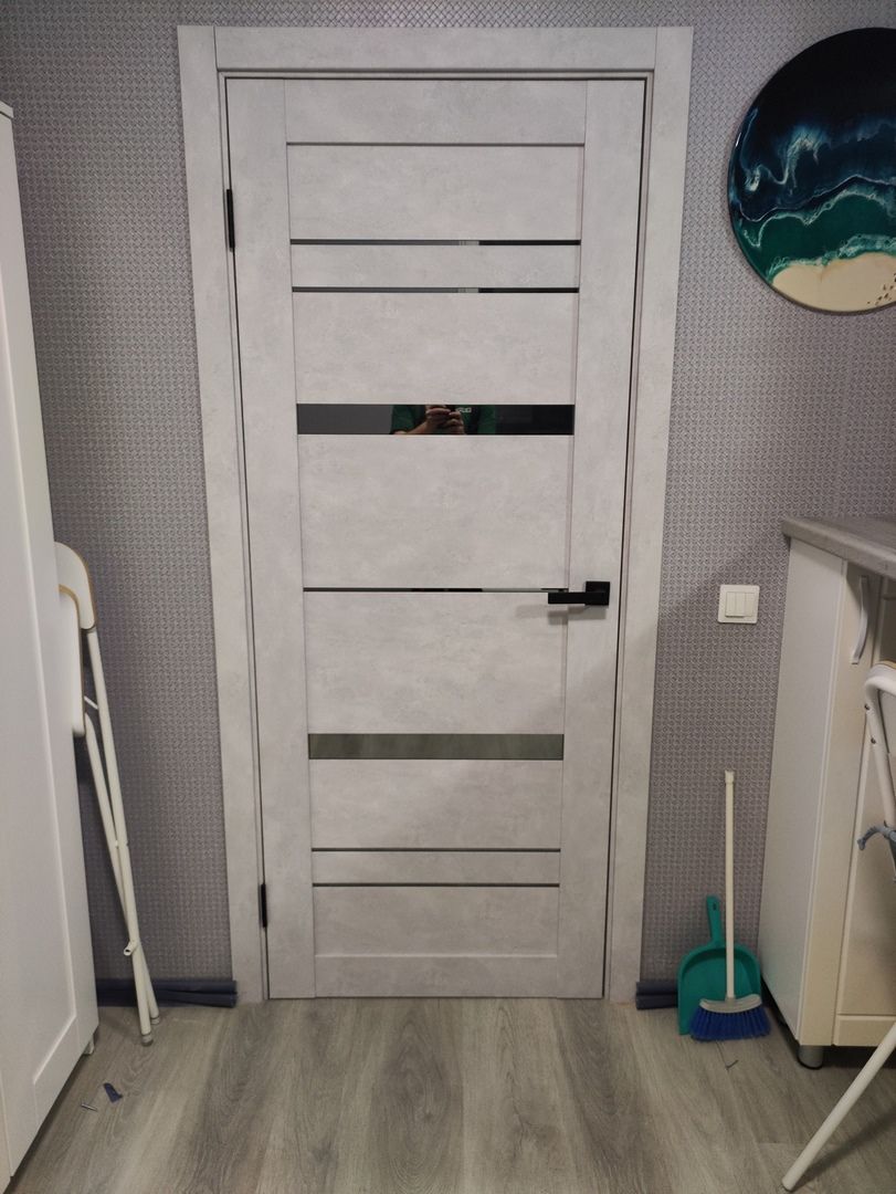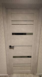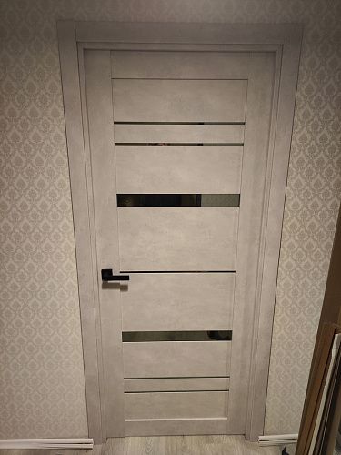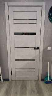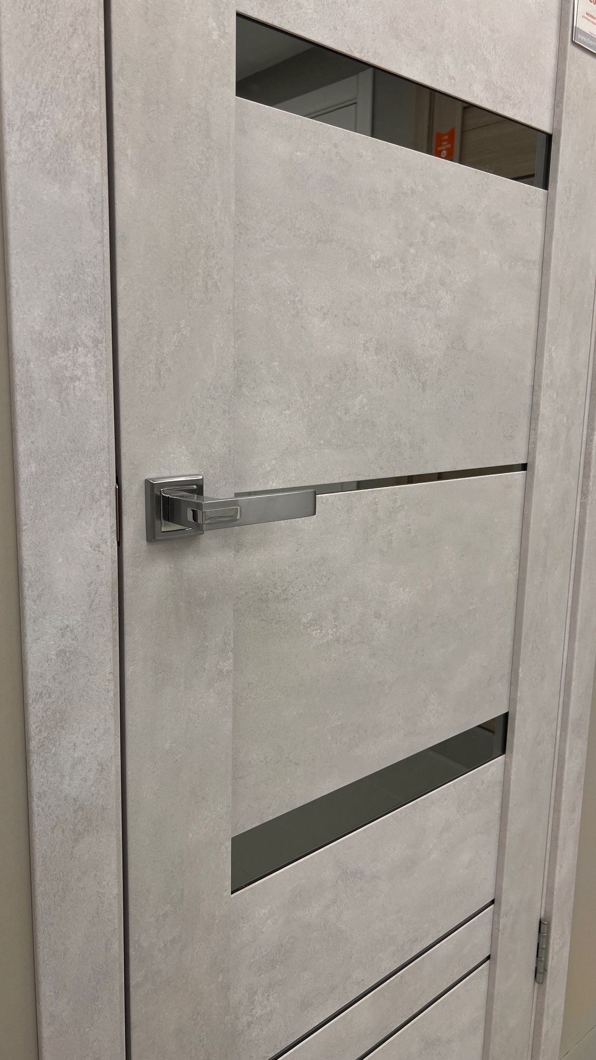 Дверь ПО Cezar 2 Бетон лайт стекло зеркало графит из Экошпона COVERFLEX (Двери Нева) в Кудрово с установкой и доставкой