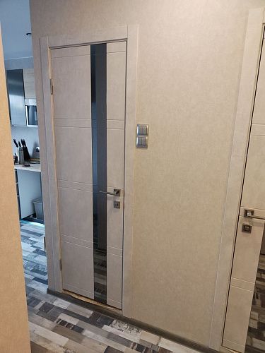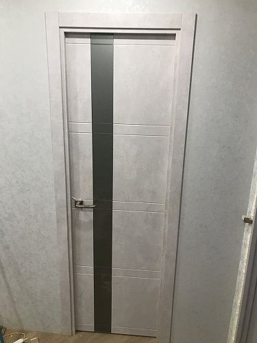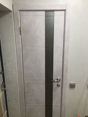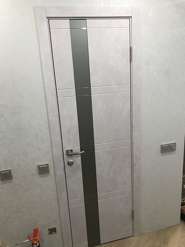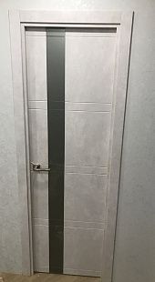Дверь ПО Evolution 1 Бетон лайт стекло зеркало-графит из Экошпона COVERFLEX (Двери Нева) в Кудрово с установкой и доставкой