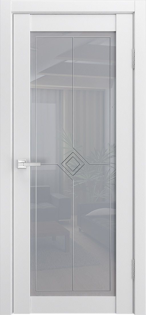 Дверь ПО Классика 3 Шагрень белая стекло Берн из Экошпона (Двери Нева) в Кудрово с установкой и доставкой